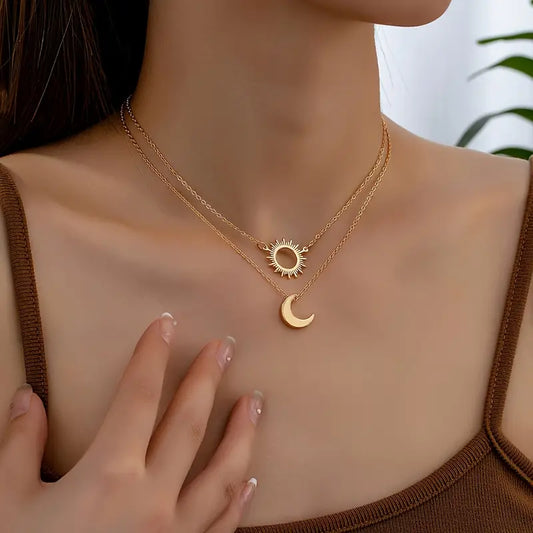 Conjunto de 2 Collares con Colgantes de Sol y Luna - Estilo Vintage y Minimalista