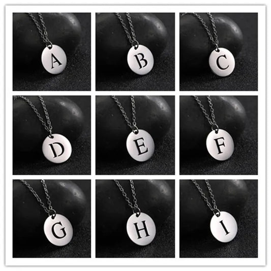 Collar con iniciales grabadas en círculo moderno, dorado de 18 quilates