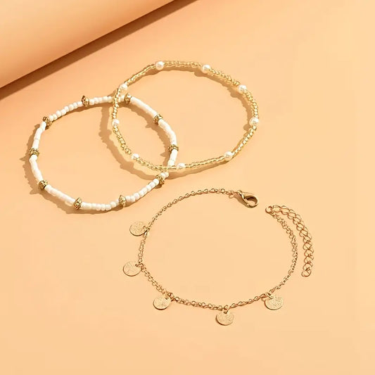 Set de Tobilleras en Capas Coastal Charm 3 Piezas | Oro