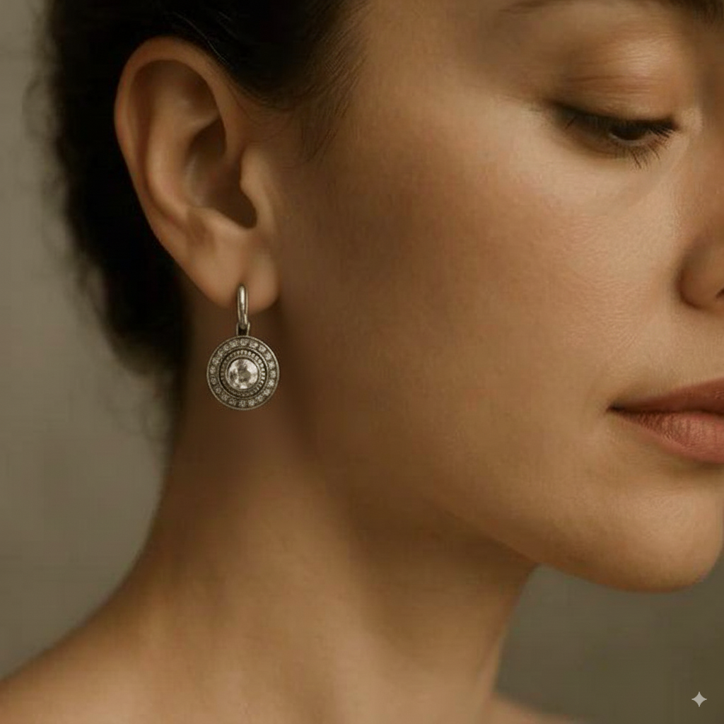 Un diseño elegante que fusiona la nostalgia con el lujo moderno. Estos pendientes destacan por su forma estructurada y simétrica, con cristales cuidadosamente dispuestos que capturan la luz desde cualquier ángulo. Ideales para elevar tu estilo diario o complementar un look sofisticado, son una expresión de personalidad y distinción en cada detalle.
