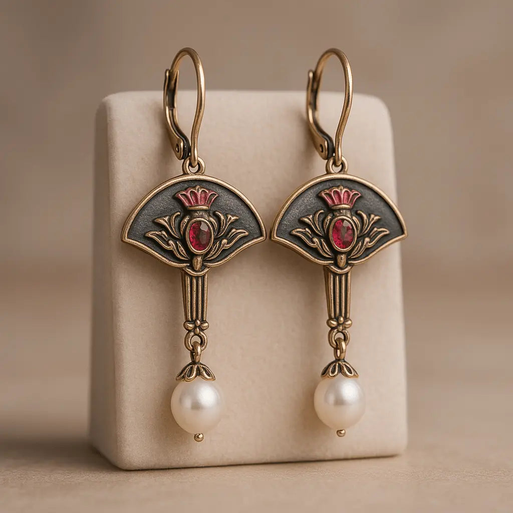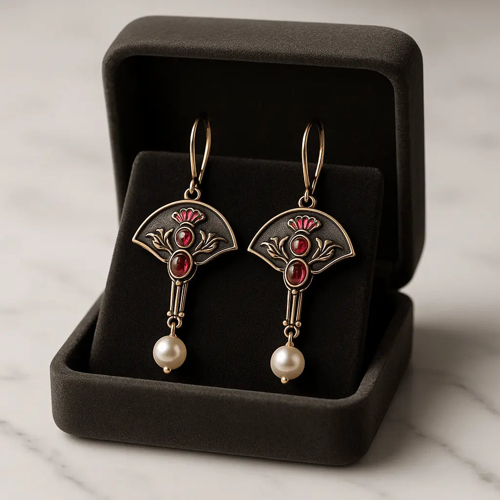 Descubre la sofisticación de nuestros pendientes vintage con cristales rojos y perlas. Cada pieza refleja una artesanía meticulosa, combinando el brillo intenso del cristal rojo con la suavidad de las perlas. Diseñados para realzar tu elegancia en cualquier ocasión, estos pendientes son el complemento perfecto para quienes buscan un toque de distinción.